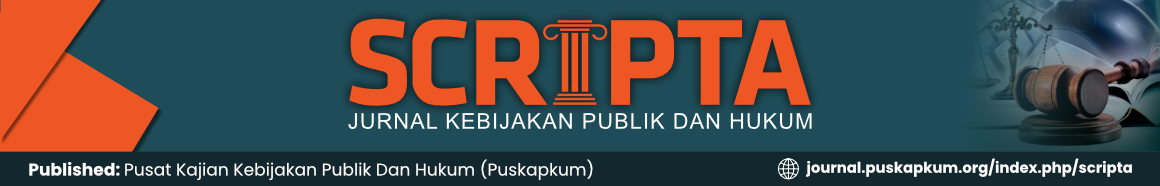 Scripta : Jurnal Kebijakan Publik dan Hukum is licensed under a Creative Commons Attribution 4.0 International License.